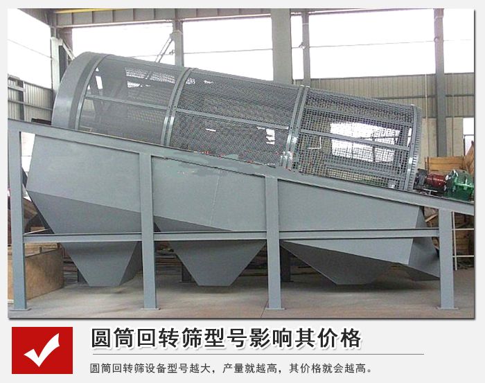 不同型號的圓筒回轉篩,其篩孔、產量是不同的,所以價格也會有所影響。圓筒回轉篩型號從YTS1030-YTS2060,其產量必然也是隨之增加的。圓筒回轉篩設備型號越大,產量就越高,其價格就會越高。(附參數表)