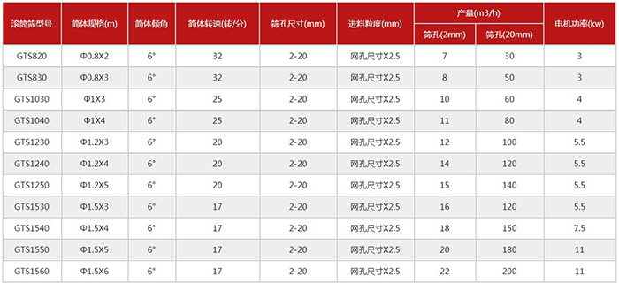 移動滾筒篩技術參數